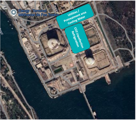 • Une unité de liquéfaction de CO₂ et éventuellement une unité de récupération de froid CO₂ en synergie avec le terminal GNL.
